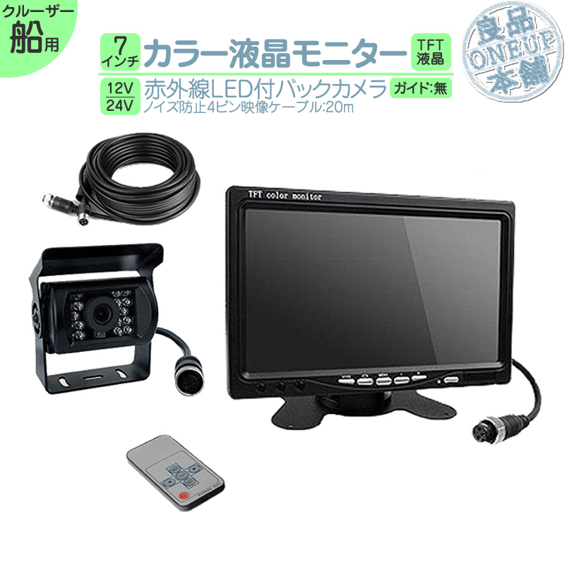 7インチ オンダッシュモニター バックカメラ 赤外線LED 暗視 4ピンケーブル 12V / 24V 電源対応 船 船舶 作業船 漁船 クルーザー 内燃機関 監視 にも!