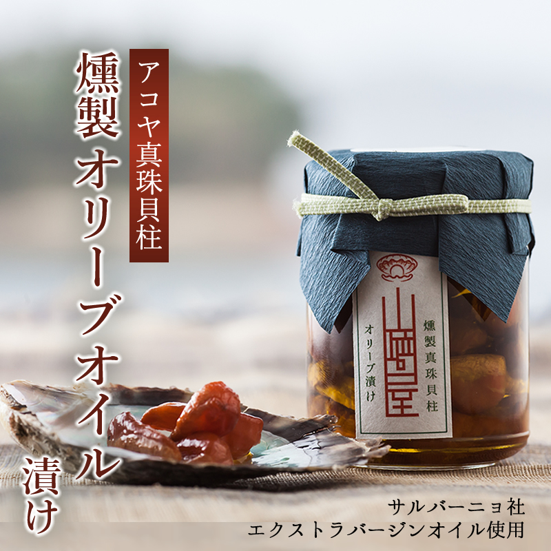 | 商品説明 | 真珠貝(アコヤ貝)貝柱を燻製し、ひと手間かけて、エクストラバージンオイルに付け込んだ一品です。 伊勢志摩のおいしい産物を活かした「伊勢イタリアン」のお店「トラットリア ラ・ミア・ヴィータ」のシェフが考案した、真珠貝柱の一番おいしい食べ方を追求した逸品です。オリーブのさわやかな香りと、燻製ならではのスモークの香りが混ざりあい絶妙です。ウイスキーやワイン、日本酒のおつまみにどうぞ。 |