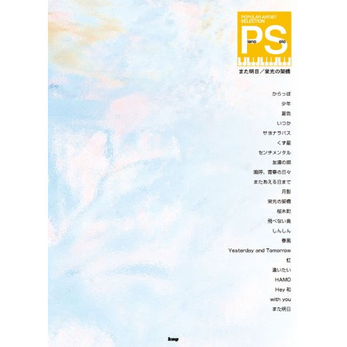 ポピュラー・アーティスト・セレクション~また明日/栄光の架橋(ゆず)1 . 栄光の架橋/2 . 夏色/3 . サヨナラバス/4 . からっぽ/5 . 飛べない鳥/6 . しんしん/7 . いつか/8 . くず星/9 . またあえる日まで/10 . 月影/11 . 虹/12 . 逢いたい/13 . Yesterday and Tomorrow/14 . HAMO/15 . Hey和/16 . 少年/17 . センチメンタル/18 . 友達の唄/19 . 嗚呼、青春の日ー/20 . 桜木町/21 . 春風/22 . with you/23 . また明日/