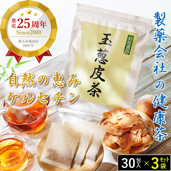 玉ねぎ皮茶(ティーバッグ 1袋30包) 3袋セット|発売25年以上 【公式】村田食品の玉葱皮茶 日本の製薬会社で製造|ケルセチン含有|純国産品