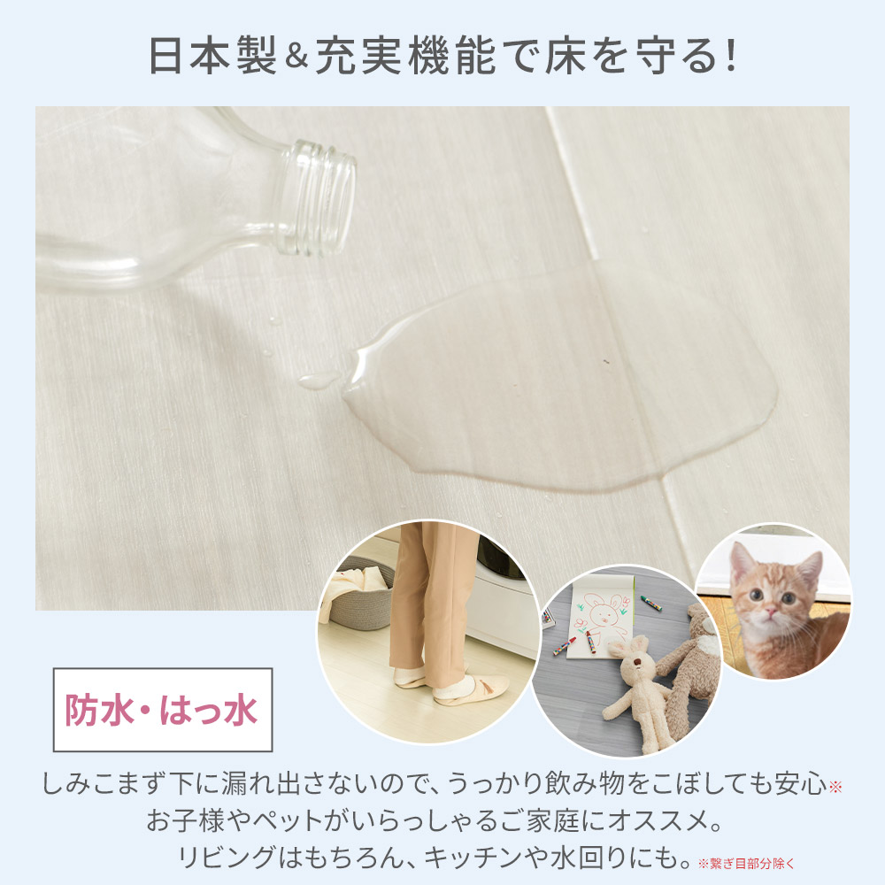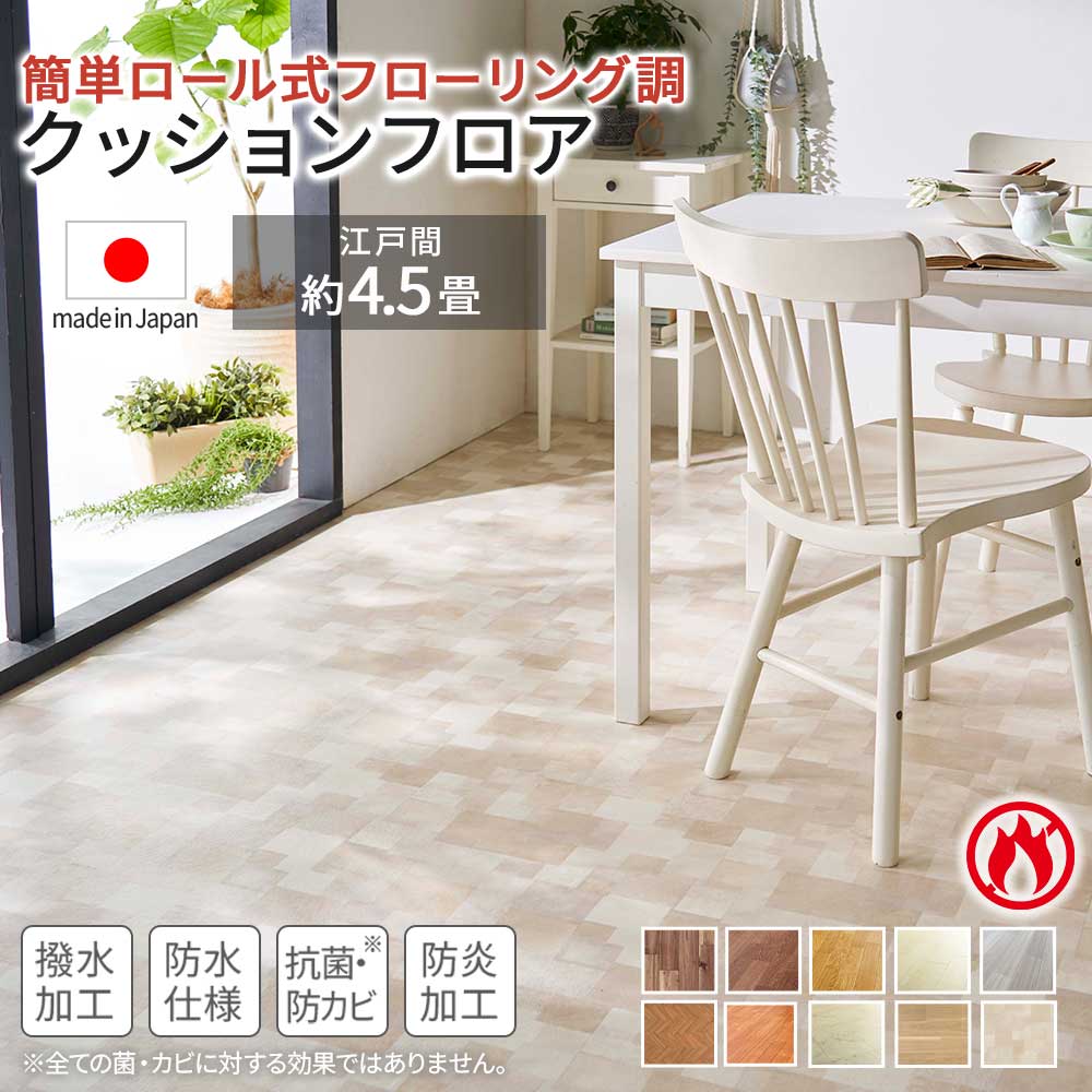 クッションフロア 4.5畳 フロアマット フロアラグ 木目 ペット 滑らない 床 シート 日本製 防水 はっ水 抗菌 防カビ 防炎 置くだけ 江戸間 本間 DIY 敷くだけ