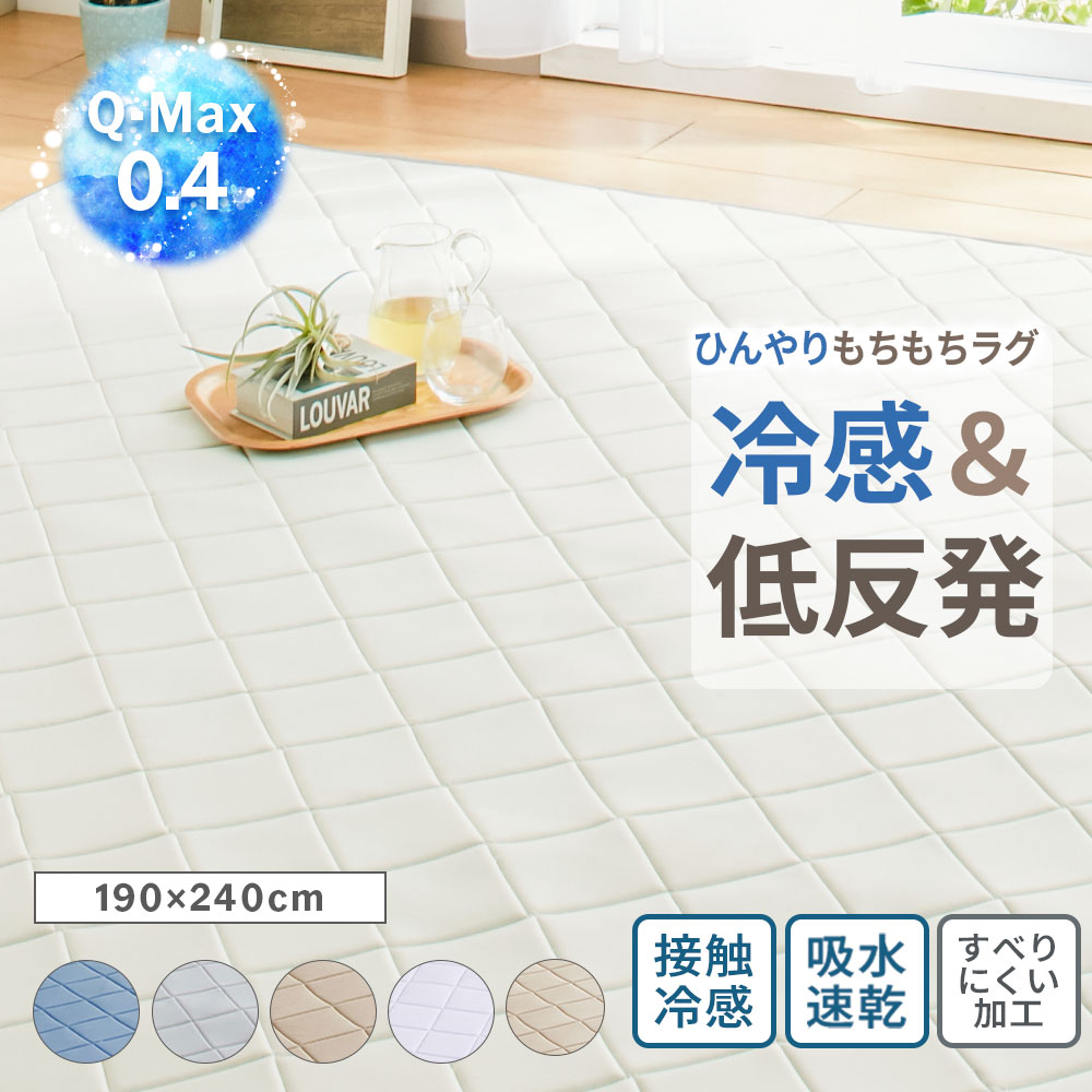 ラグ 夏 3畳 冷感 接触冷感 おしゃれ もちもち 低反発 ウレタン 滑り止め付き 吸湿速乾 190×240 北欧 キルトマット カーペット ラグマット
