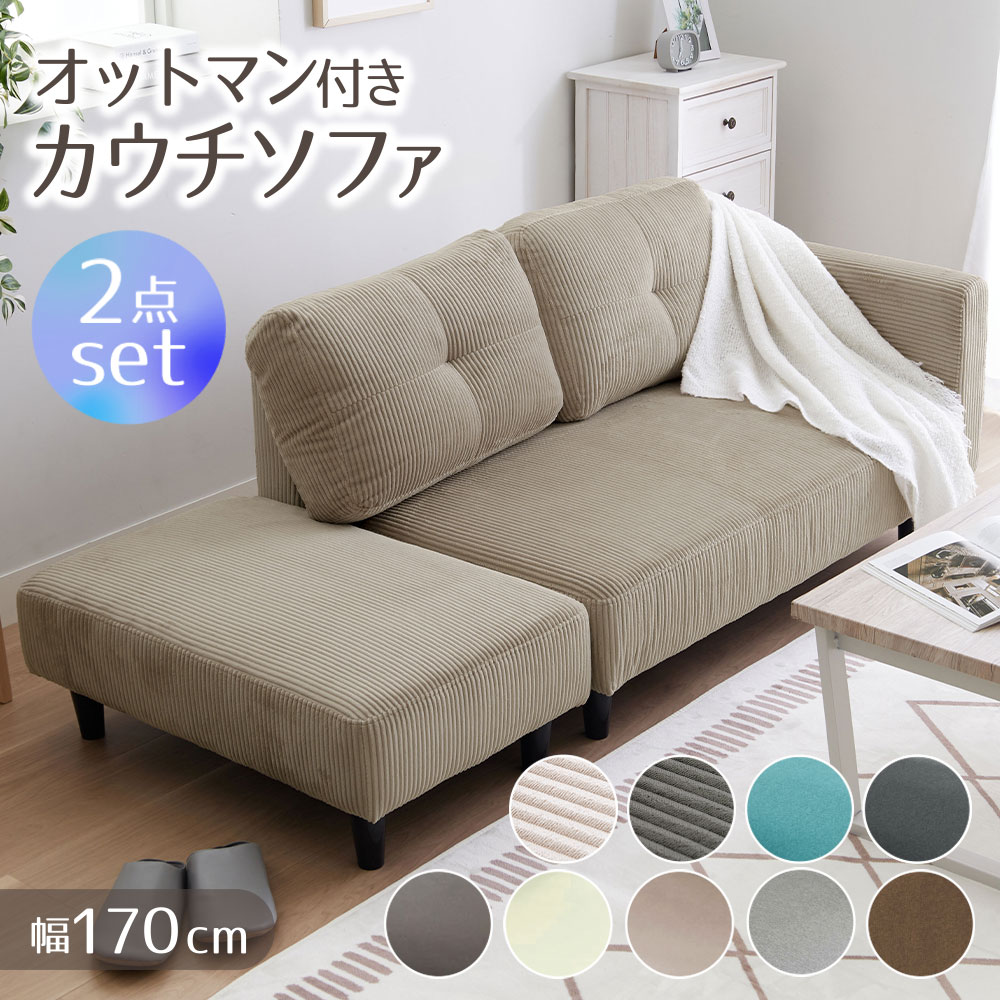 組み合わせ次第で様々な使い方ができるオットマン付のカウチソファ。座面幅約77cmのゆとりのある大きさで、ゆったりとくつろぐことができます。