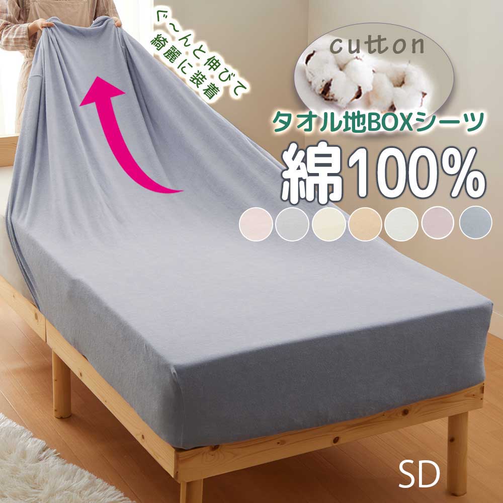ボックスシーツ 綿100% タオル地 セミダブル ベッドカバー マットレスカバー さらさら 洗える のびのび 伸縮