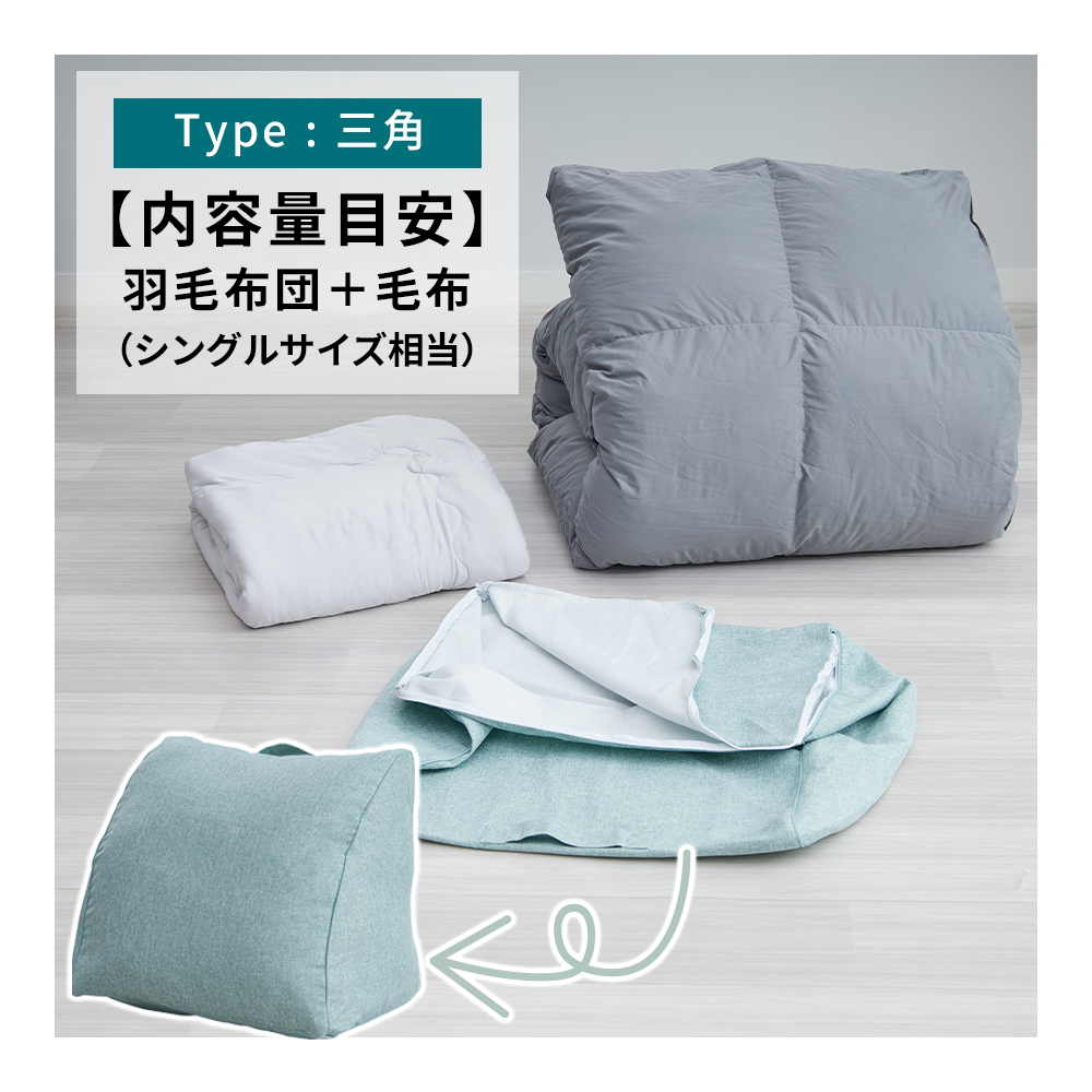 布団収納袋 クッション 布団収納 収納袋 シングル 三角 おしゃれ 取っ手付き 収納ケース 持ち運び 寝具 洗える 布団入れ 布団収納ケース ファスナー