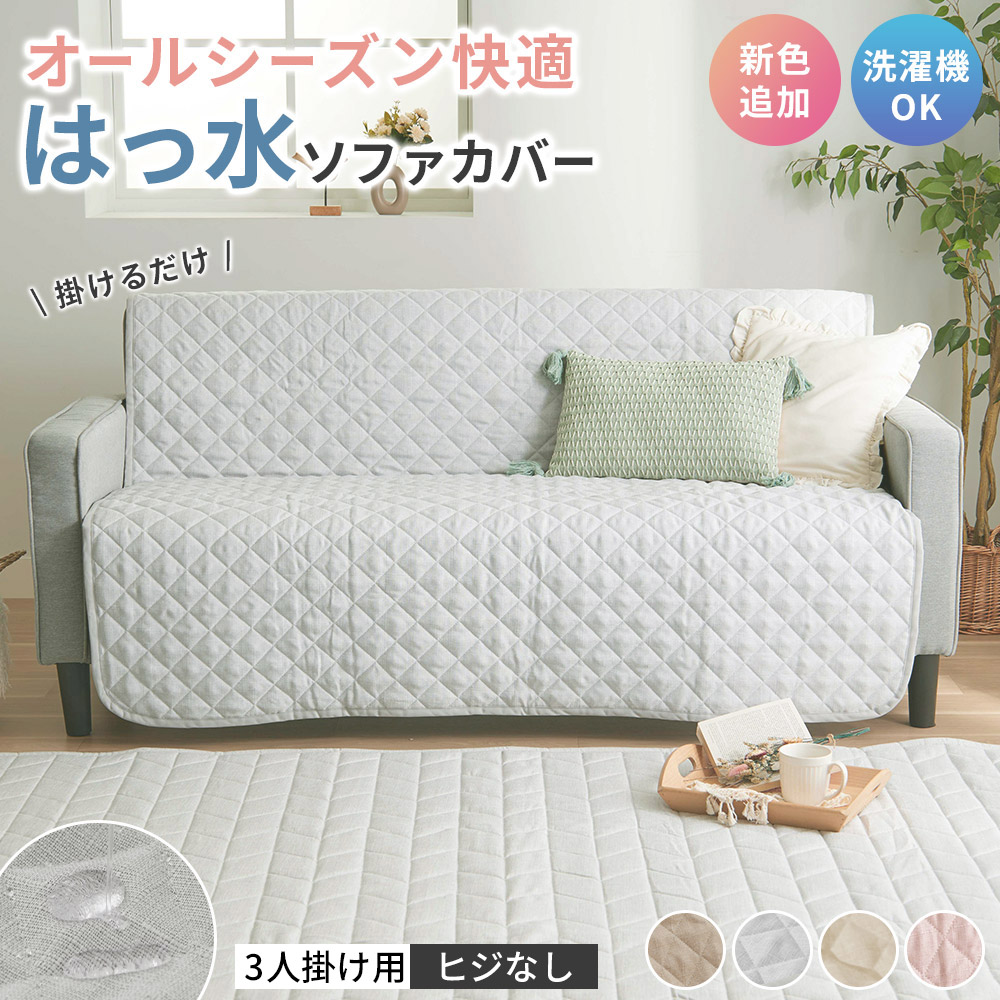 ソファーカバー 3人掛け 肘なし 肘無し 麻風 はっ水 キルト加工 滑り止め付き 洗える 洗濯可能 オールシーズン ずれにくい ソファカバー