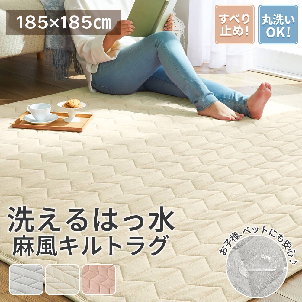 ラグ カーペット ラグマット 2畳 洗える はっ水 麻風 キルト 滑り止め 185×185 ふっくら さらさら 肌触り オールシーズン