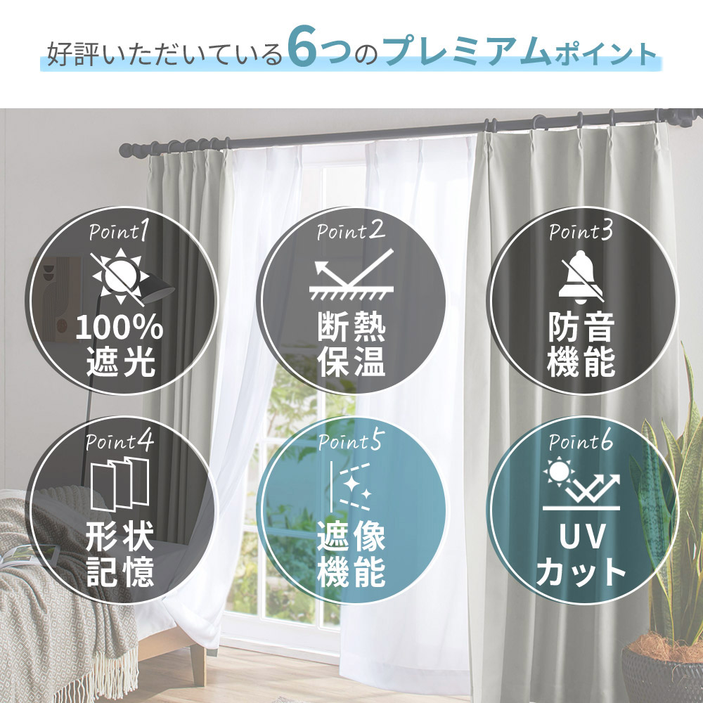■機能/断熱効果、保温効果、1級遮光(実測遮光率100.00%)、防音加工、形状記憶加工