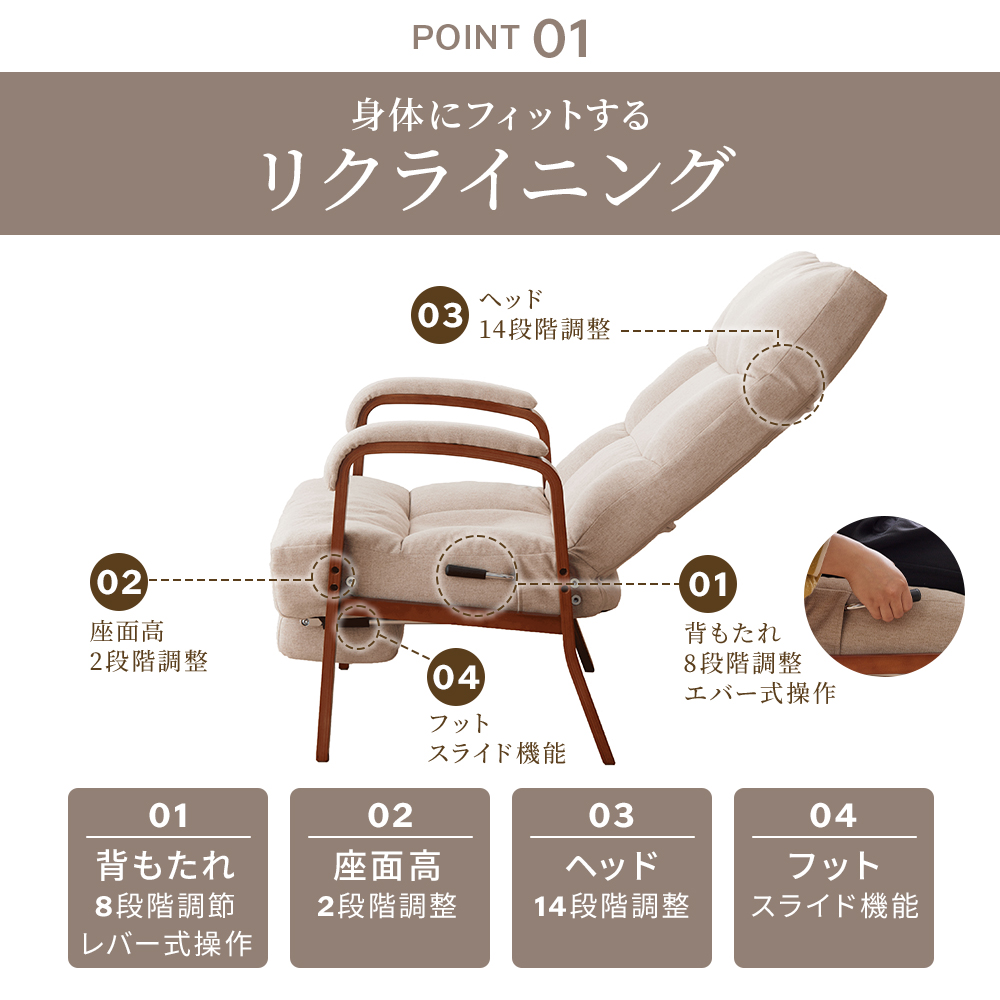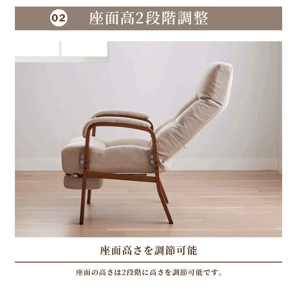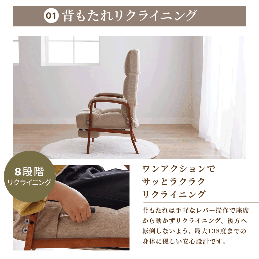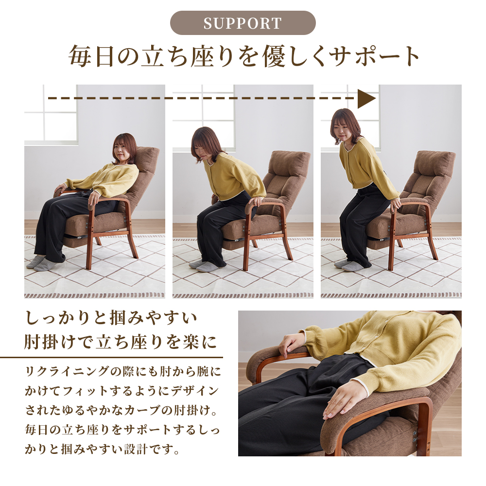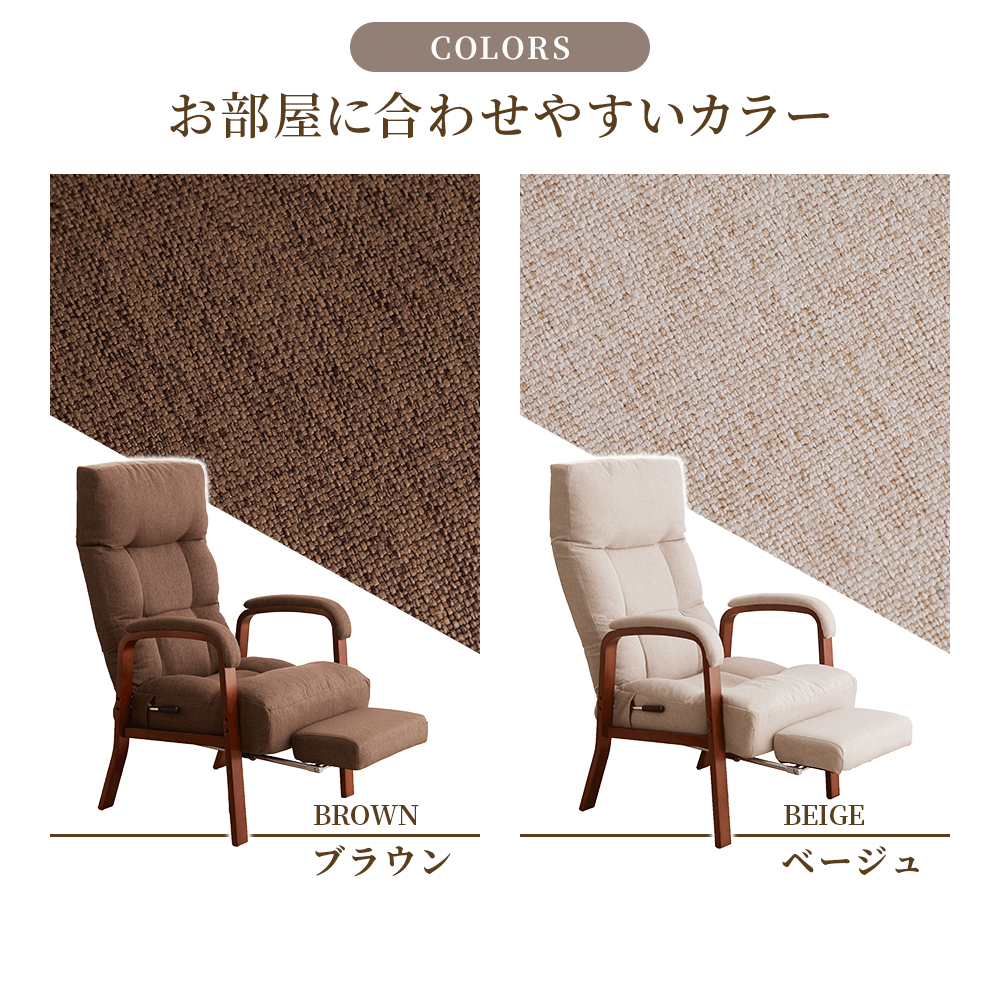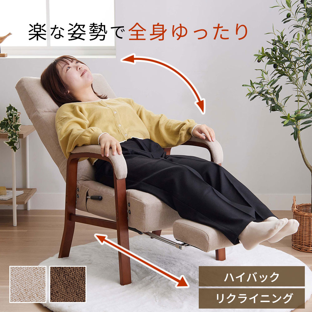座椅子 高座椅子 リクライニング ハイバック 1人掛け 肘掛付き 椅子 おしゃれ 8段階 リクライニングチェア 高齢者 フットレスト付 高さ調整