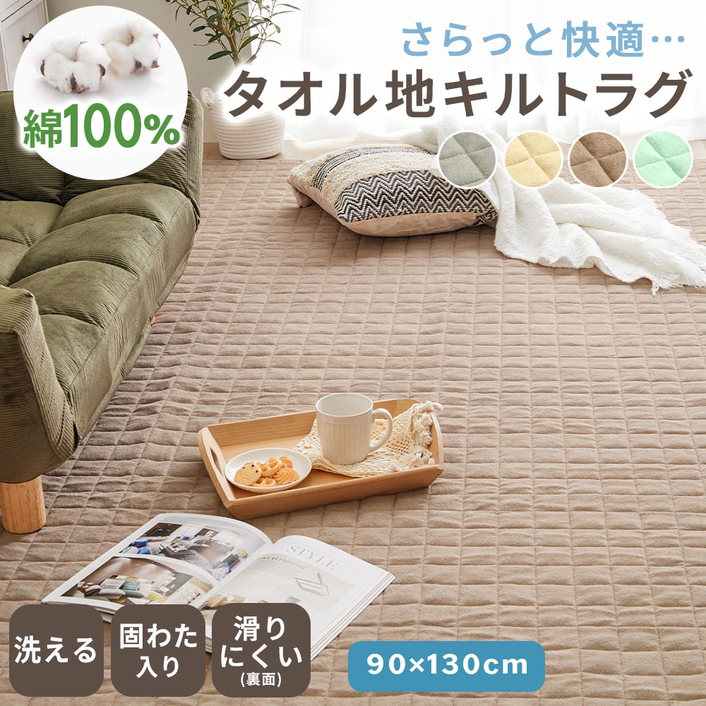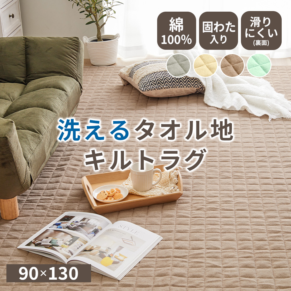 ラグ 1.5畳 洗える 綿 100% タオル地 90×130 リビング 北欧 オールシーズン 厚手 滑り止め ラグマット カーペット