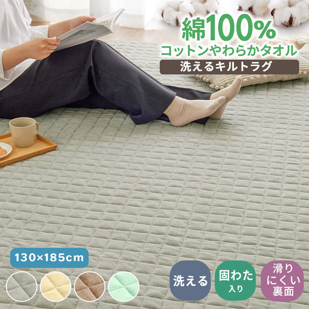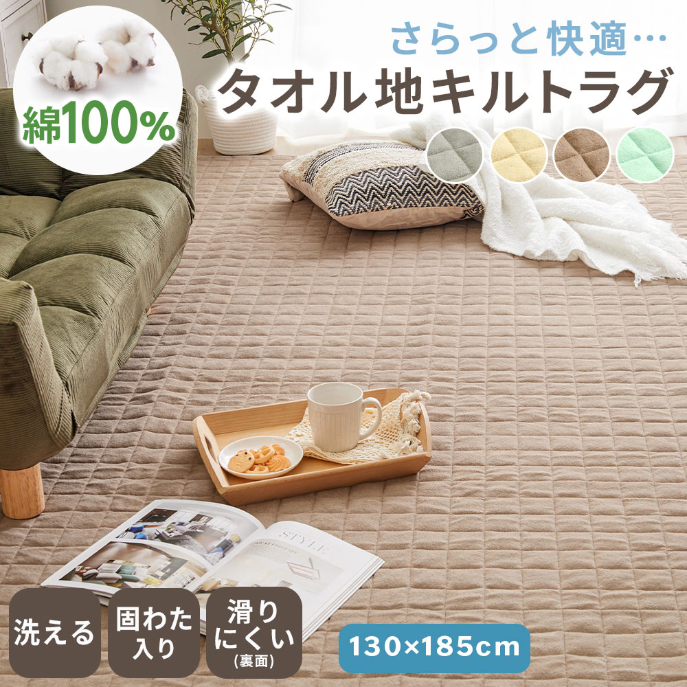 ラグ 2畳 洗える 綿 100% タオル地 130×185 リビング 北欧 オールシーズン 厚手 滑り止め ラグマット カーペット