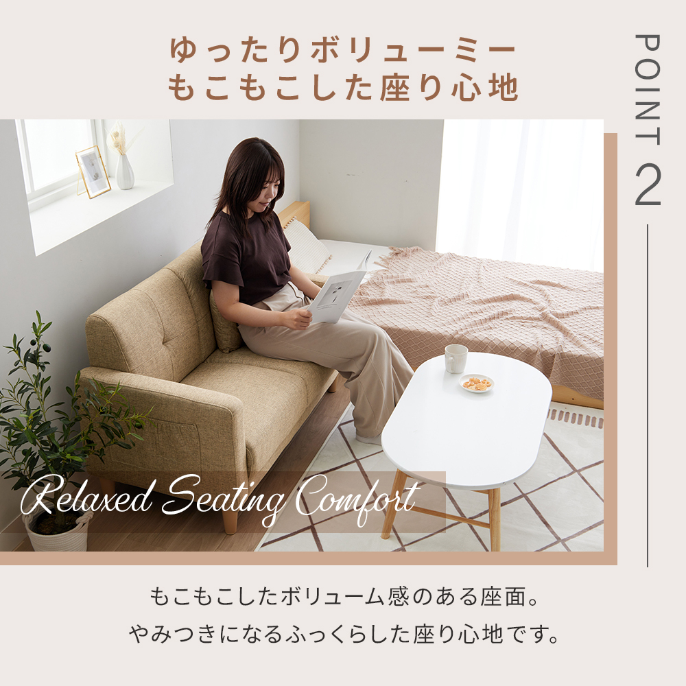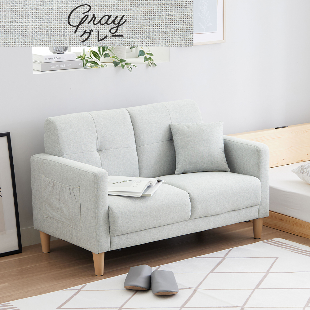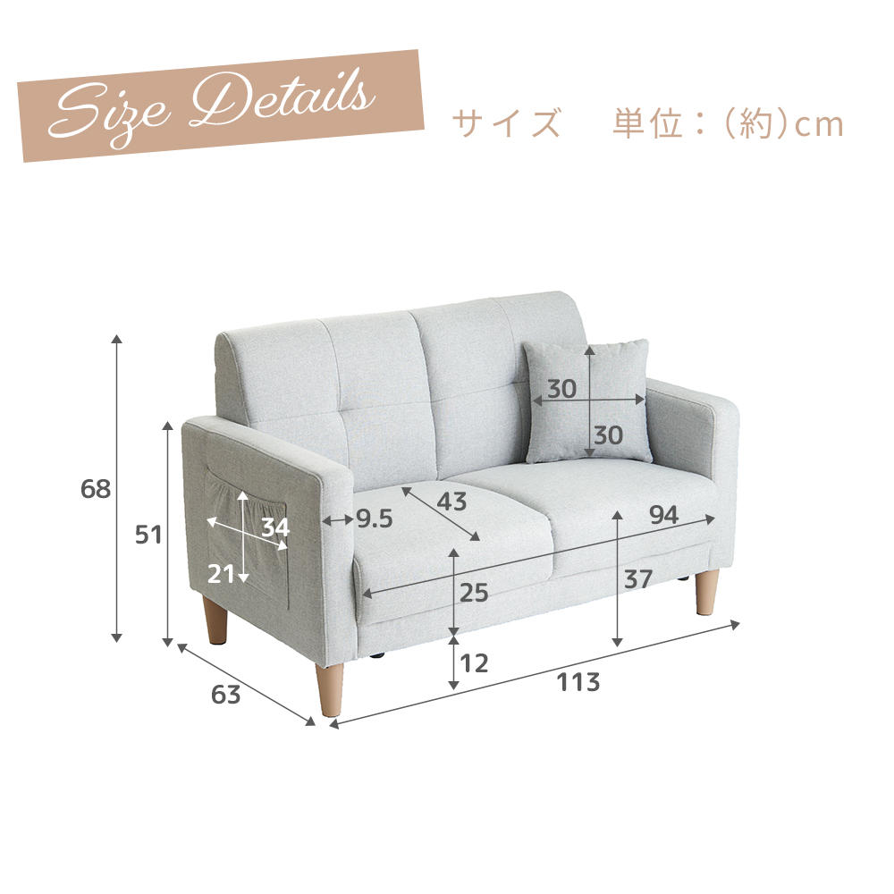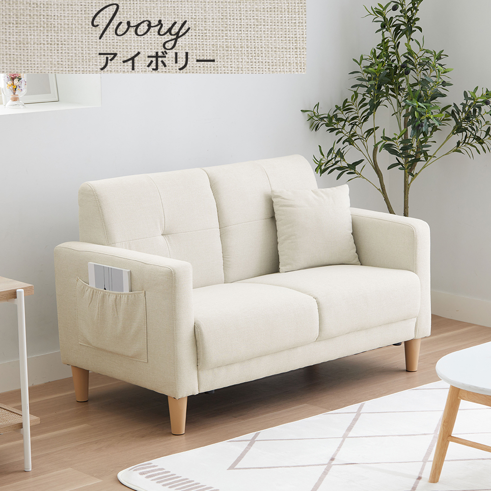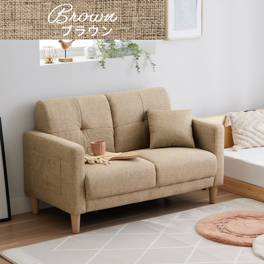 ソファー 2人掛け 安い コンパクト サイドポケット付き クッション付き 北欧 おしゃれ ソファ ファブリック 2人 二人掛け 脚付き 軽い 小さめ 一人暮らし