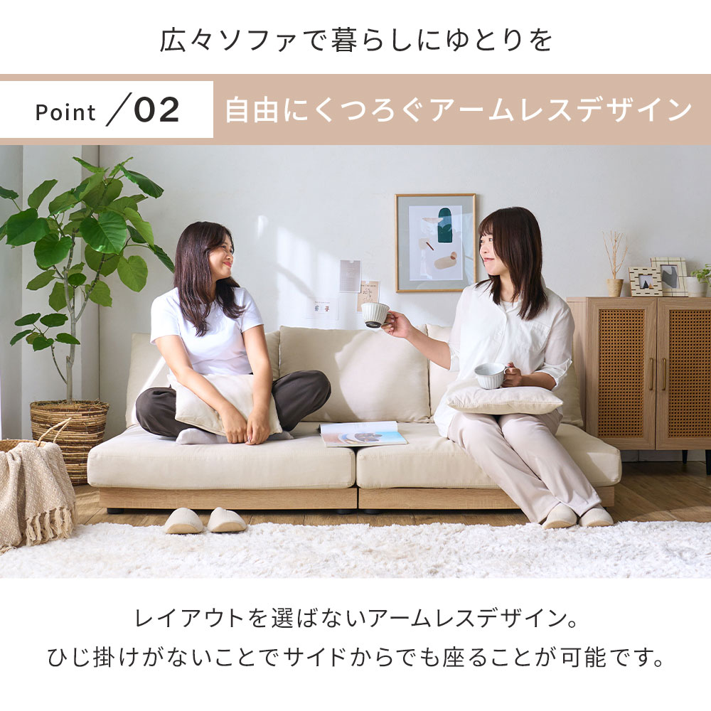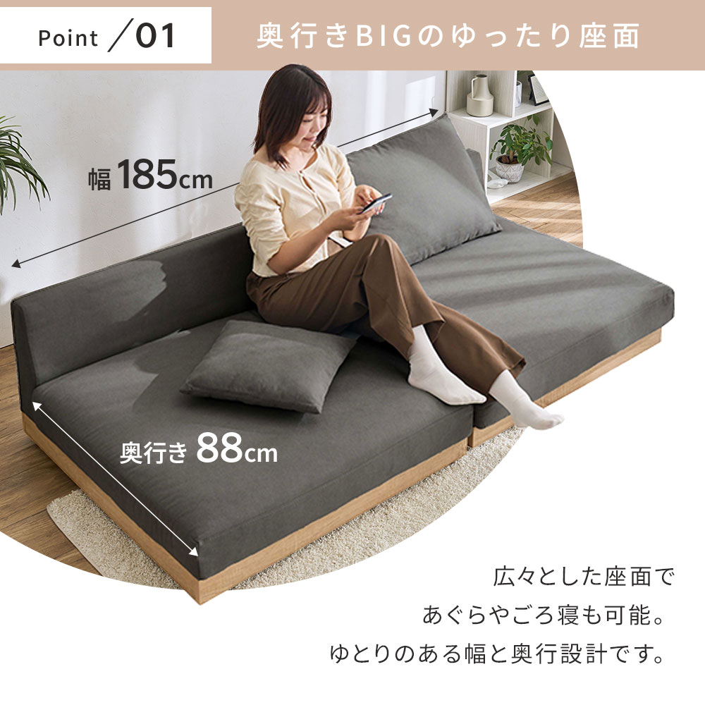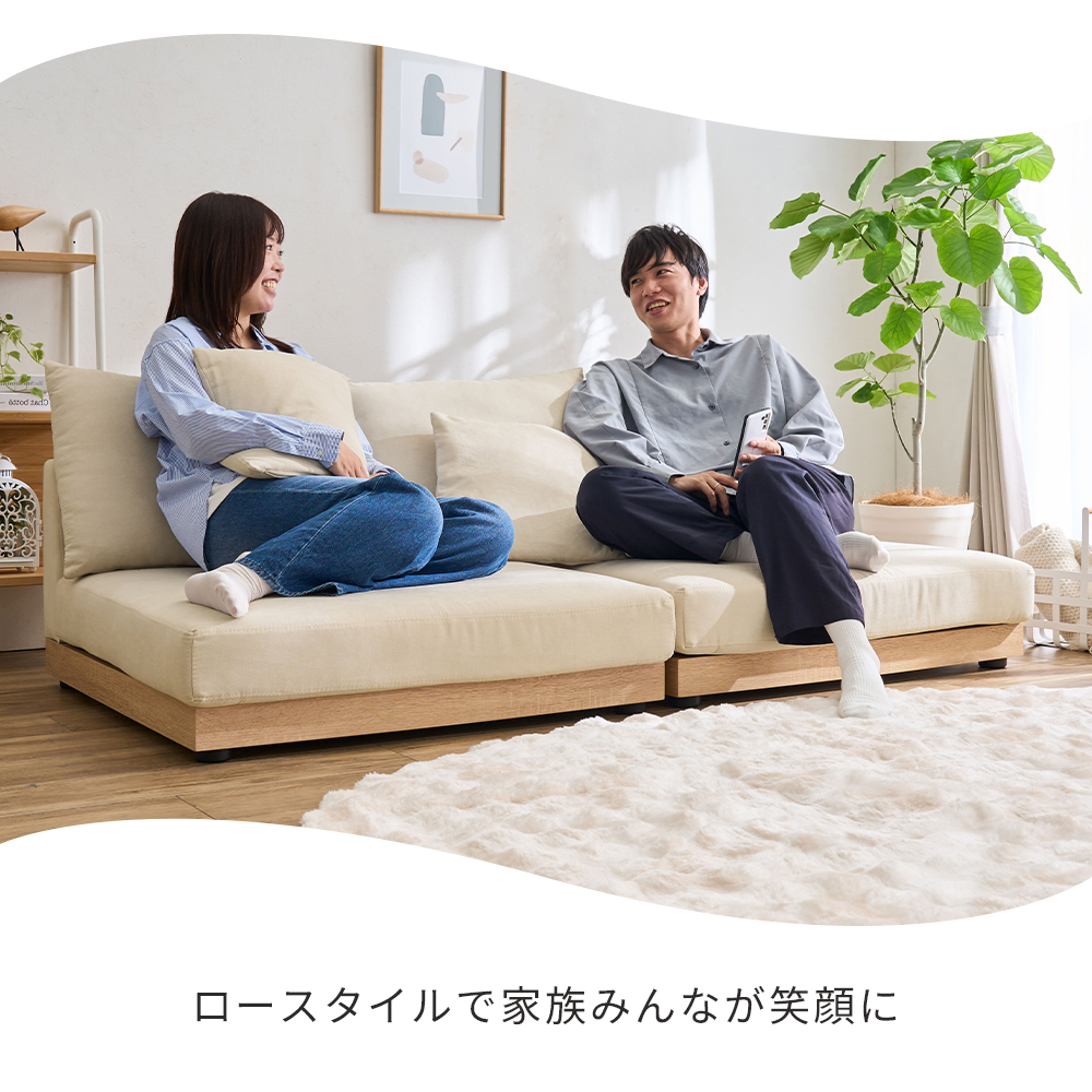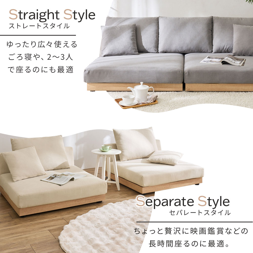 ローソファー 2人掛け ソファー 木飾り ワイド セパレート 185cm クッション ローソファ 座面広い コーナーソファー ソファ 二人掛け
