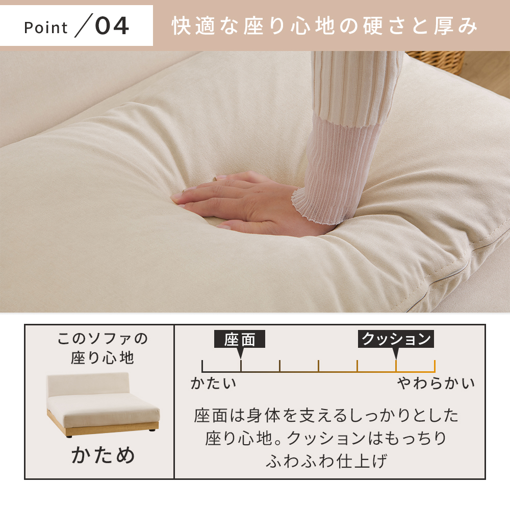 ■品質/構造部材:天然木・合板・合成樹脂化粧繊維板(メラミン)、クッション材:ウレタンフォーム・シリコンフィル、張り材:ポリエステル