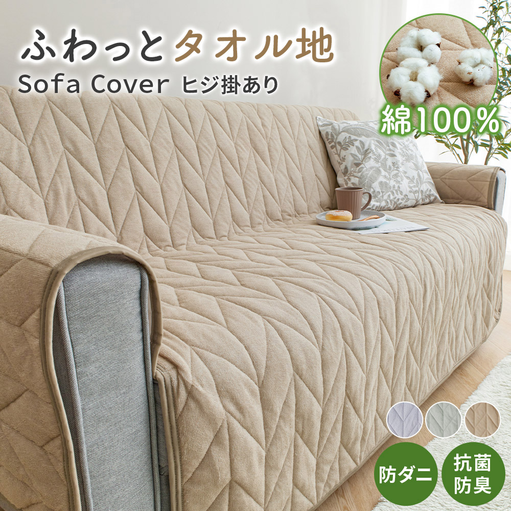 ソファーカバー 3人掛け 肘あり 肘付 綿100% タオル地 防ダニ 抗菌防臭 滑り止め付き 洗える 洗濯可能 オールシーズン ずれにくい 肌触り ソファカバー