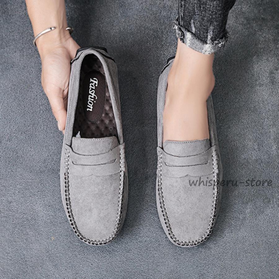 ローファー スリップオン ドライビングシューズ メンズ スエード調 デッキシューズ 軽量 モカシン 靴 カジュアルシューズ 黒 灰 手作り 紳士靴