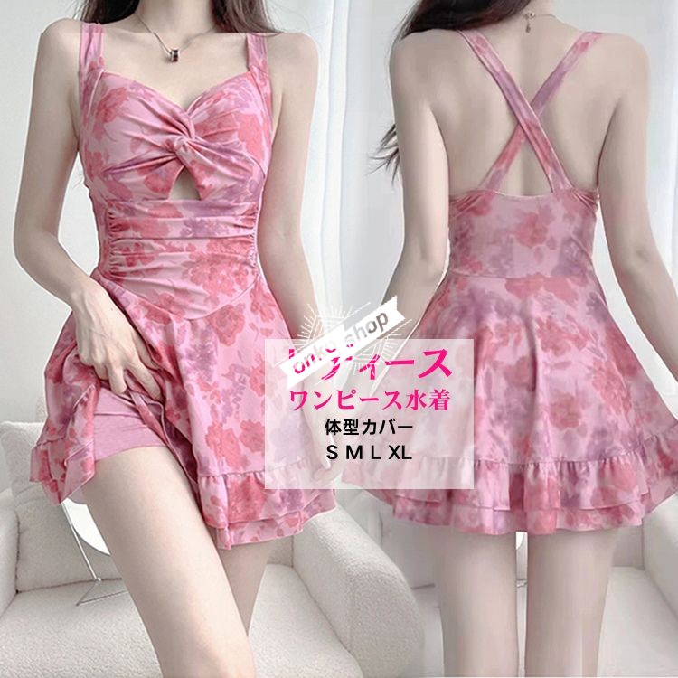 格安 水着 レディース タンキニ ビキニ 胸パッド付き ピンク 体型カバー ママ水着 みずぎ 着やせ 体型カバー オトナ 女性 大人 スクール水着 スポーツウエア リ
