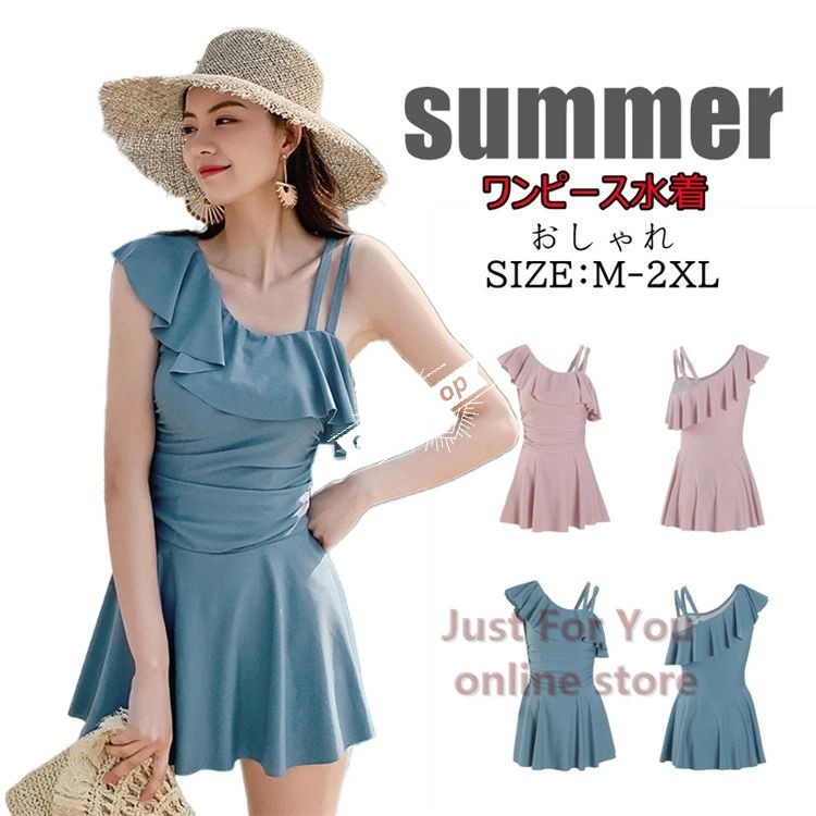 青 ピンク 露出控えめ ワンピース 水着 レディース 体型カバー 水着 レディース オールインワン 体型カバー水着 無地 ママ水着 みずぎ ミズギ フリル 大きいサイ