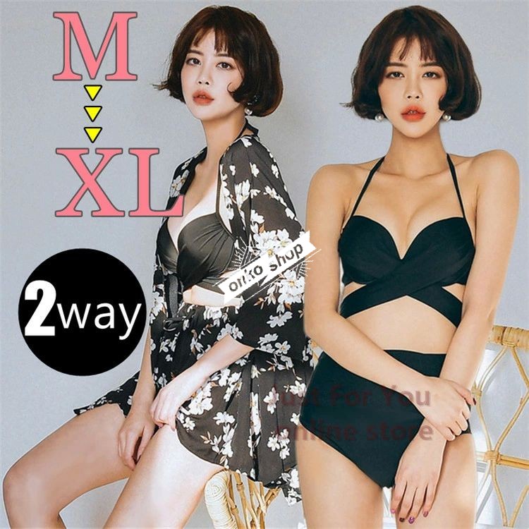 海外人気 黒 花柄 水着 レディース 体型カバー 水着 タンキニ ラッシュガード ビキニ 4点セット 2way 20代 30代 40代 ママ水着 柄シャツ 可愛い 和風 お洒落 く