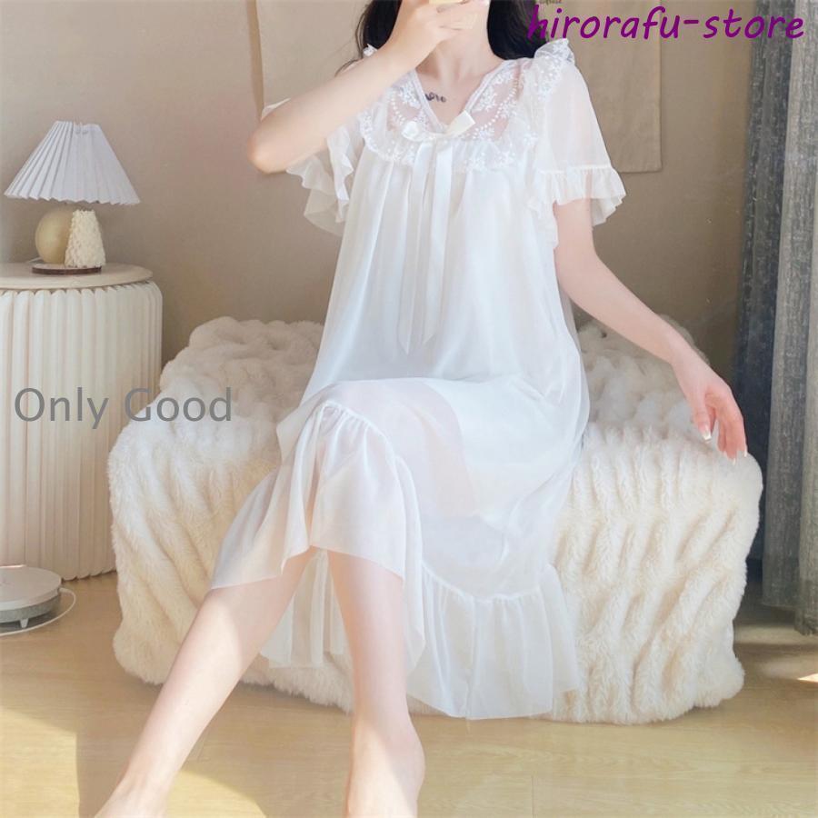 ネグリジェ 春夏秋 半袖ネグリジェ 姫風ワンピース ロング丈 レースネグリジェ シースルー ナイトロープ ルームウェア パジャマ レディース 大人可愛い