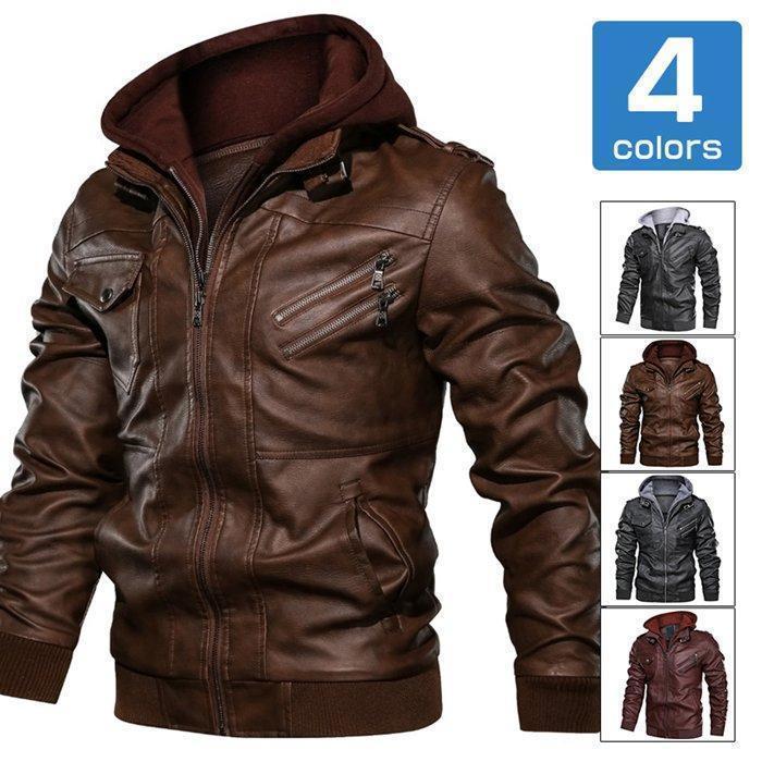 ライダースジャケット メンズ レザー ジャケット フード着脱可能 シングルライダース パーカー フード アウター バイク 革ジャン 秋 冬 春 防風 バイク ビジネス 通勤 通学 保温 秋服 冬服
