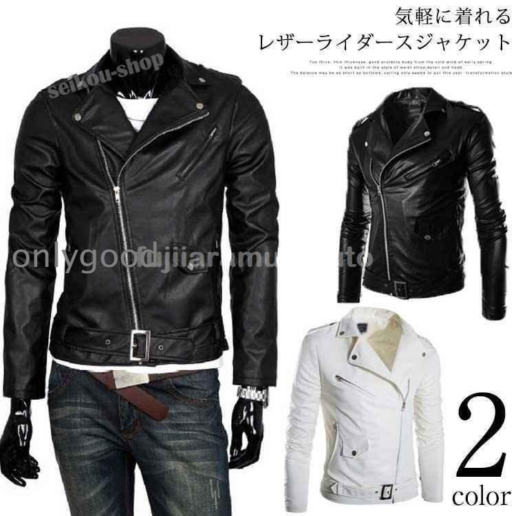 ライダースジャケット メンズ レザージャケット フェイクレザー 合皮 ジャケット ライダース メンズジャケット 秋冬 裾ベルト付き