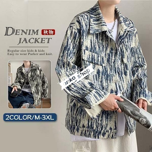 メンズ フェイクデニム風 ジャケット ゆったりデザイン カジュアル ストリート ファッション オールシーズン対応 秋冬春オールシーズン