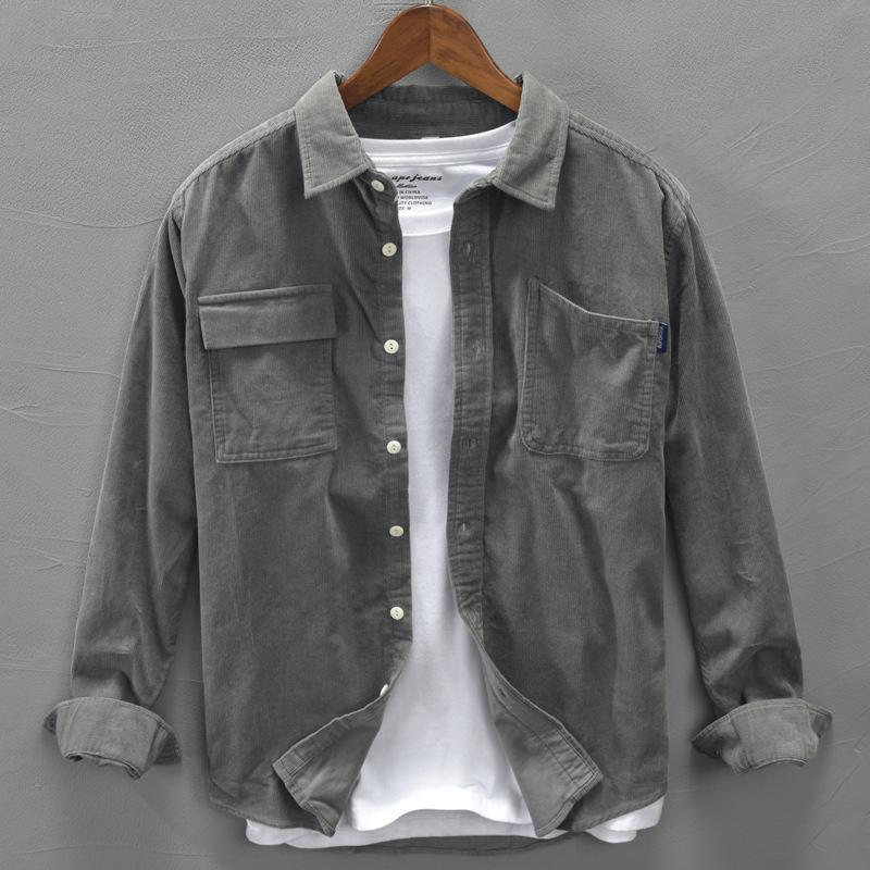 メンズ 男性 新作 春秋 ワークウェア ジャケット トレンド カジュアル ルーズ コーデュロイ シャツ トップス