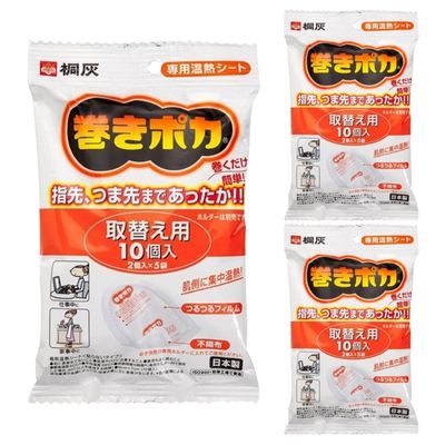 【3袋計30個】桐灰 巻きポカ 手首足首用 取替え用 カイロ 10個入 huyu