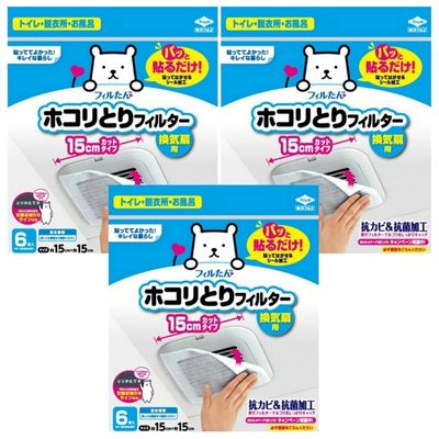 【3個計18枚】東洋アルミ パッと貼るだけホコリとりフィルター 換気扇用15cm 6枚入 5409 sj