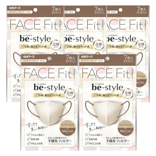 【5袋計35枚】白元アース ビースタイル 立体タイプ ふつうサイズ サンドベージュ×マロン 7枚入