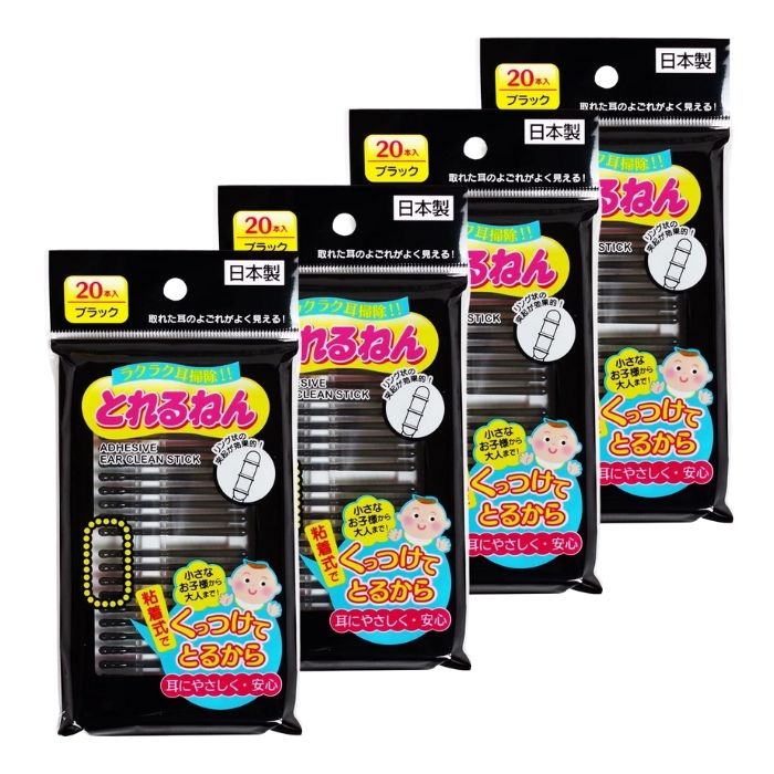 【4個計80本】粘着式耳かき とれるねん ブラック 20本入