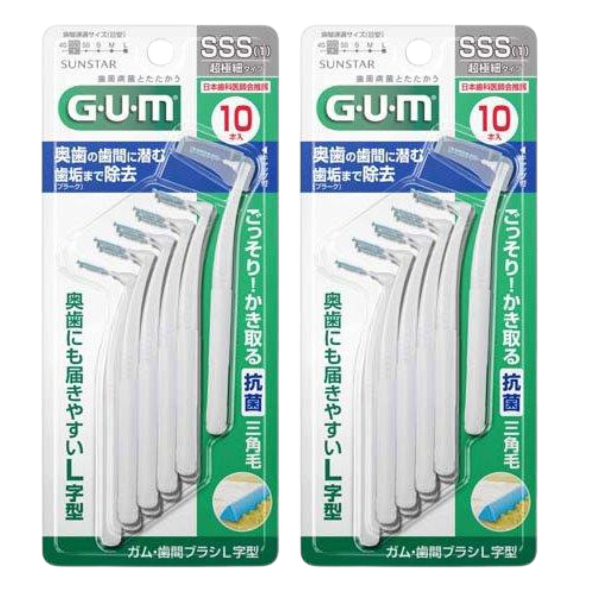 【2個計20本】サンスター GUM ガム 歯間ブラシ L字型 SSSサイズ 10本入 超極細タイプ