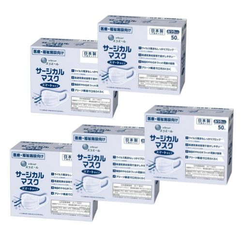 【5箱計250枚】大王製紙 エリエール サージカルマスク スマートタイプ ふつうサイズ 50枚入り 不織布マスク 日本製マスク