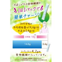 ・【1パックで食物繊維が4.2g】成人女性の食物繊維摂取目安量(※2)は1日当たり18g以上です。しかし、20代女性の1日当たりの平均摂取量(※1)は14.6gで、目安量に足りていません。イージーファイバーなら不足分を手軽に補えます