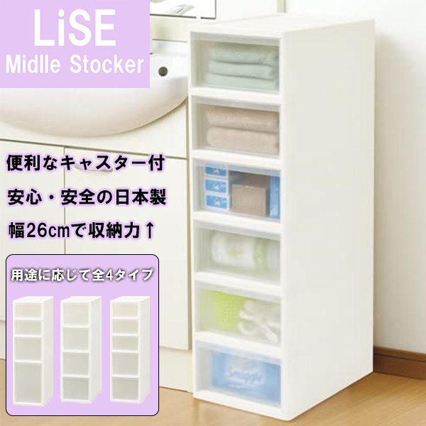 キッチン収納 キャスター付き 6段 5段 4段 ミドルストッカー 隙間収納 引き出し サニタリー 大容量 日本製 リビング収納 おしゃれ シンプル 国産 ホワイト