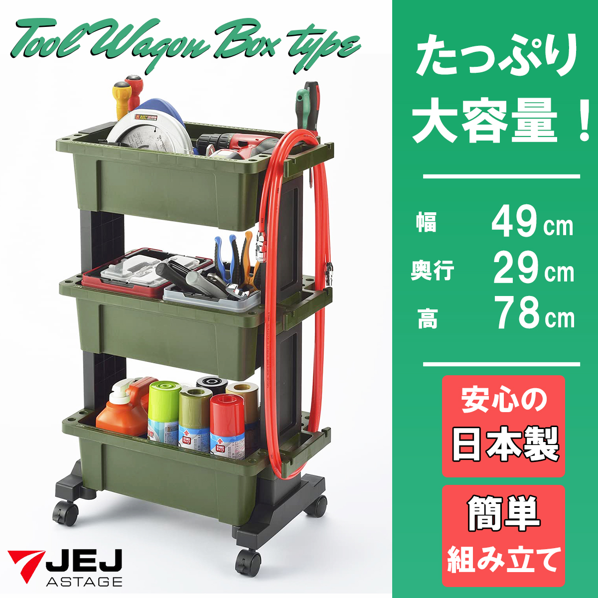 ツールワゴン ツールボックス 3段 日本製 国産 キャスター付き ワゴン DIY 工具 工具箱 収納 作業台 シンプル ツールカート アウトドア カーキ
