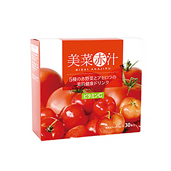 「美菜赤汁」は、5種の赤野菜と厳選した天然素材を使用した、すっきりとさわやかなアセロラ味の美容健康ドリンクです。
