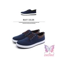 メンズシューズ 靴 レースアップ デッキ 紐靴 運動靴 デニム 綿 布 バイカラー シンプル カジュアル 軽量 軽い クッション ラバー 防滑 男性 紳士