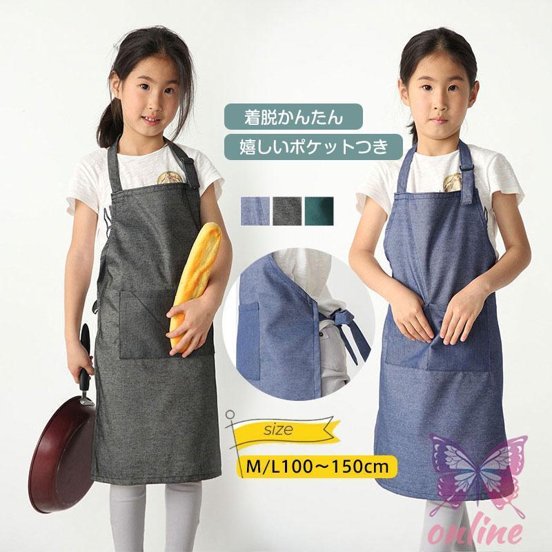 デニムエプロン キッズ こども 調理実習 学校 家庭科 お絵かき 色落ちしない 男の子 女の子 男女兼用 小学生 調理実習 ユニセックス キッズ用