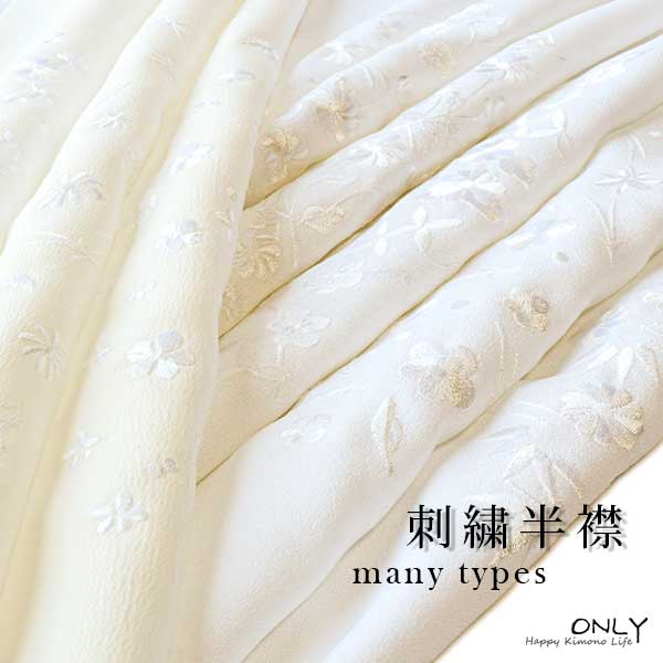 半衿 刺繍半襟 白 花柄 ポリエステル 日本製 洗える 留袖用 訪問着用 送料無料 ONLY pp-210-224
