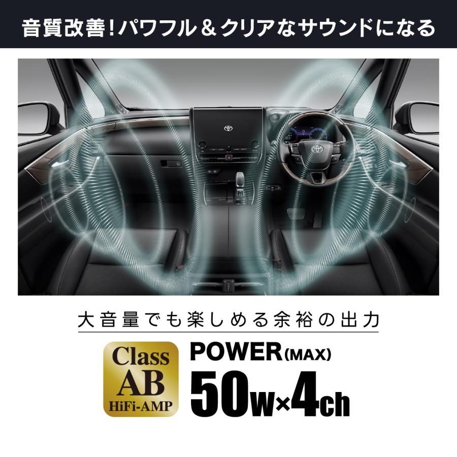 出力を45Wから50Wに増強し、純正オーディオの音質を一層引き上げました。臨場感あるサウンドが車内を包み込みます。