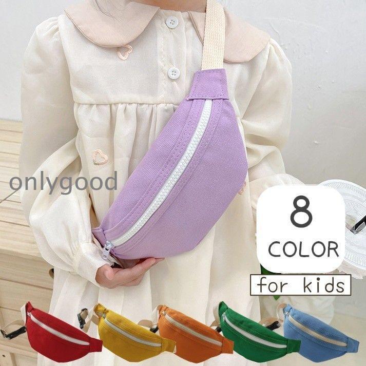 ボディバッグ キッズ 子供用 ウエストバッグ ウエストポーチ キャンバス地 斜め掛け 肩掛け ショルダー ファスナー かわいい おしゃれ カラバリ豊富