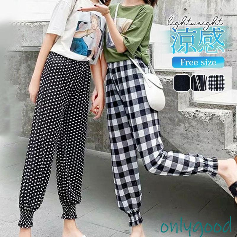 ジョガーパンツ レディース 春夏 薄手 柄 接触冷感 涼感 UVカット ルームウェア ロング 肌触り 女性 寝巻き 軽量 可愛い 通気性