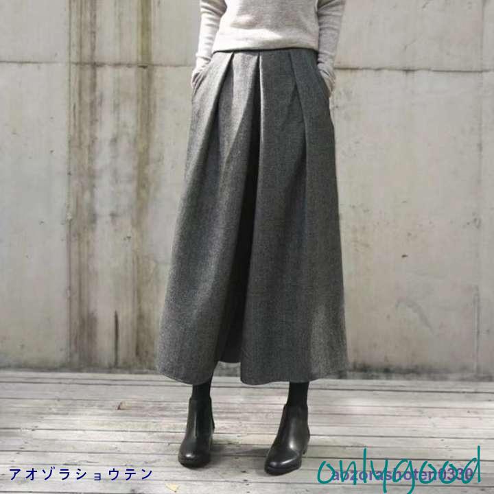 ワイドパンツ 秋 冬 レディース ボトムス ガウチョパンツ ゆったり フレアパンツ 9分丈 無地 体系カバー 秋新作 コーデ あったか 春 秋 美脚 ズボン