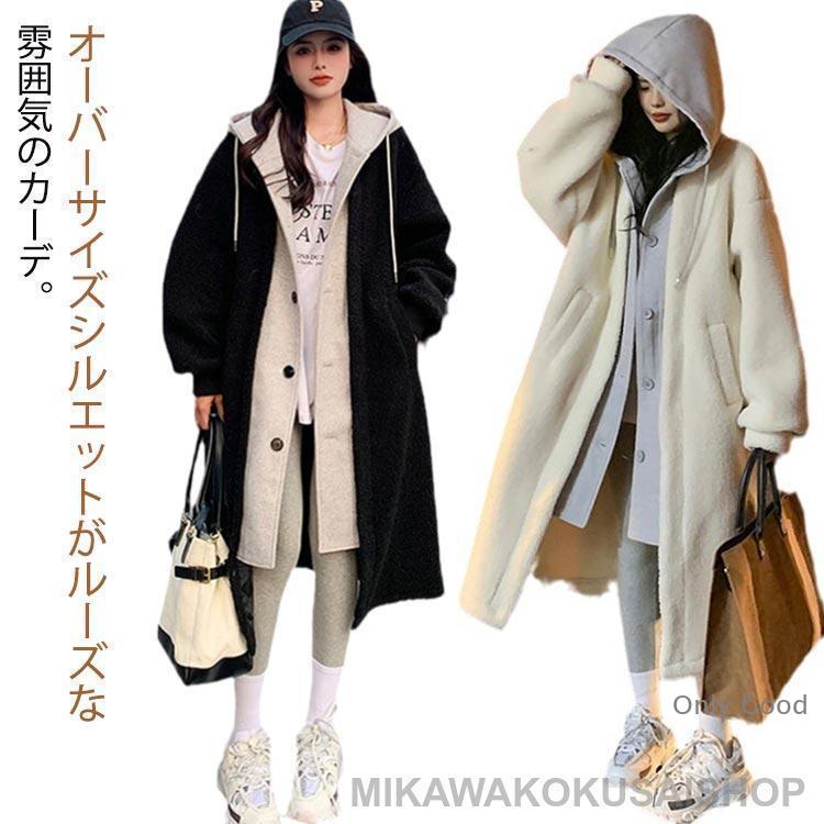 厚手 秋冬 ボアコート ロング 大きいサイズ レイヤード風 フード付き 毛皮コート レディース ファーコート 防寒 カジュアル 大人可愛い 20代