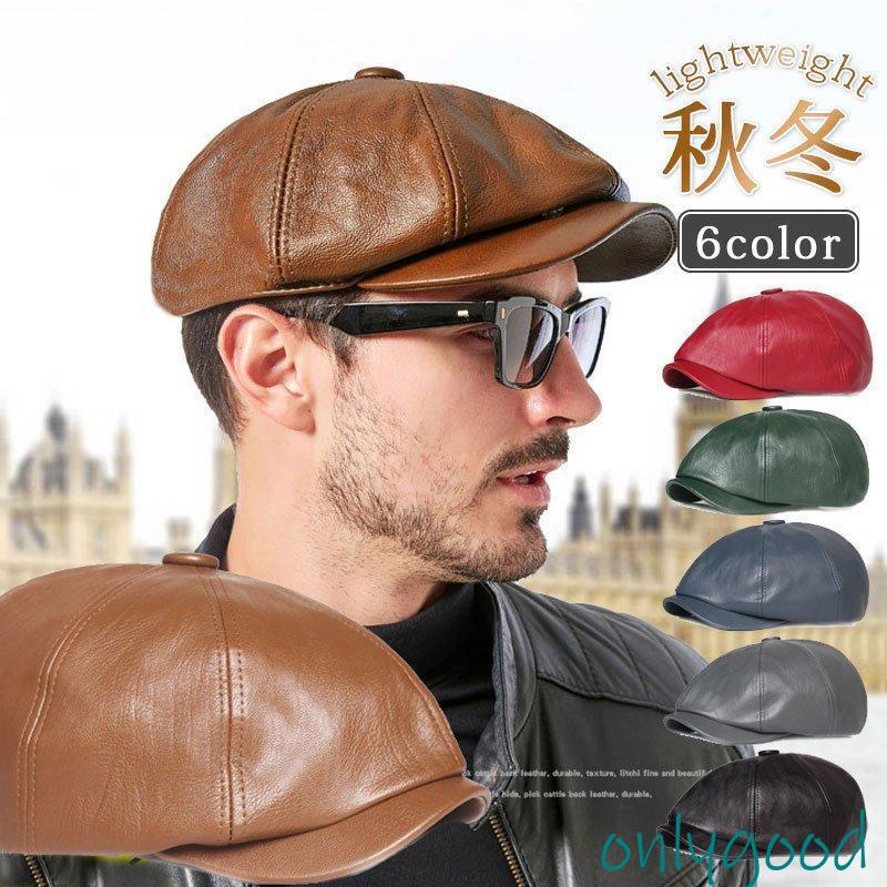 キャスケット メンズ ハンチング 帽子 レザー PU レディース キャップ ぼうし 秋冬 ゴルフ帽 軽量 カジュアル 父の日 ギフト