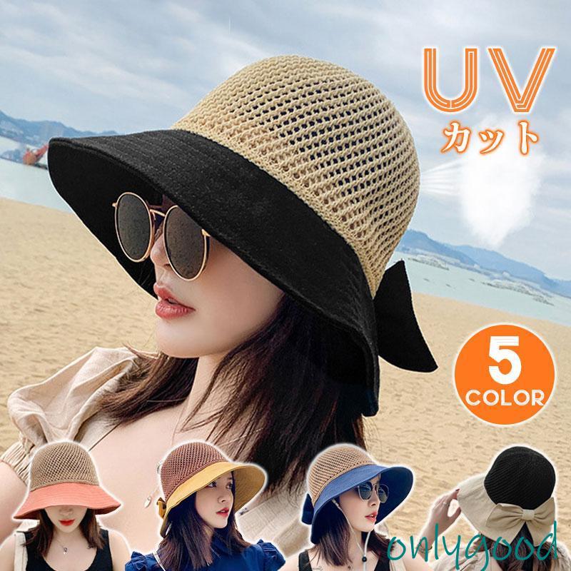 帽子 麦わら帽子 レディース リボン UVカット UV つば広 日よけ 小顔 春夏 紫外線対策 おしゃれ 散歩 山登り