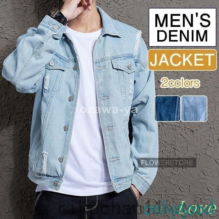 Gジャン ジージャン 秋 メンズ デニムジャケット ヴィンテージ ジャンパー カジュアル デニム 細身 お兄系 カッコイイ 春物 ダメージ加工