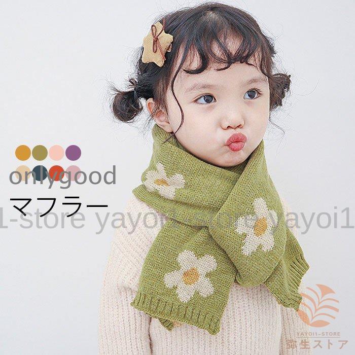 マフラー 子供用 キッズ ロングマフラー 大判マフラー 大判 ストール ロング丈 花柄 リブニット 女の子 女児 可愛い あったか 暖かい 防寒対策 冬新作